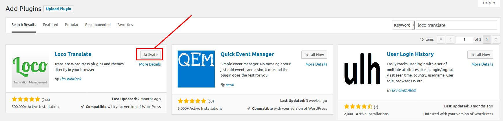 Step 1: Install and activate plugin "Loco