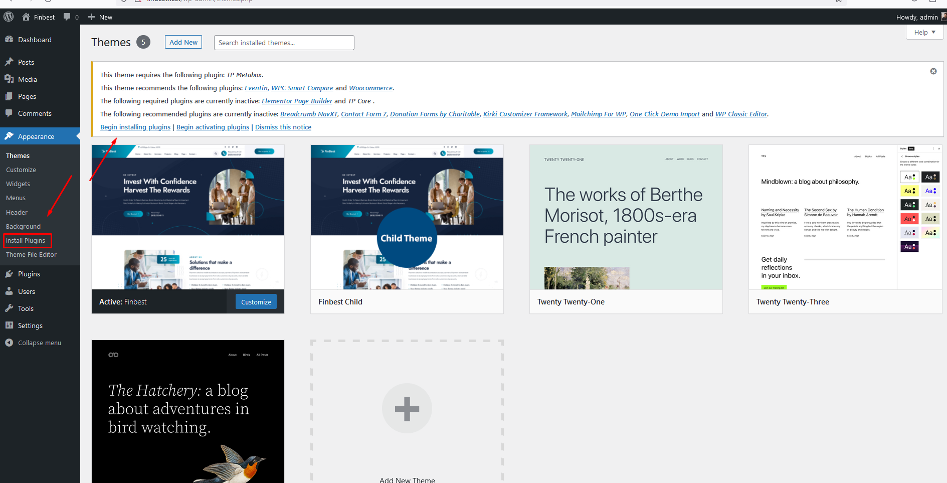 You will now see Finbest Theme listed among the
