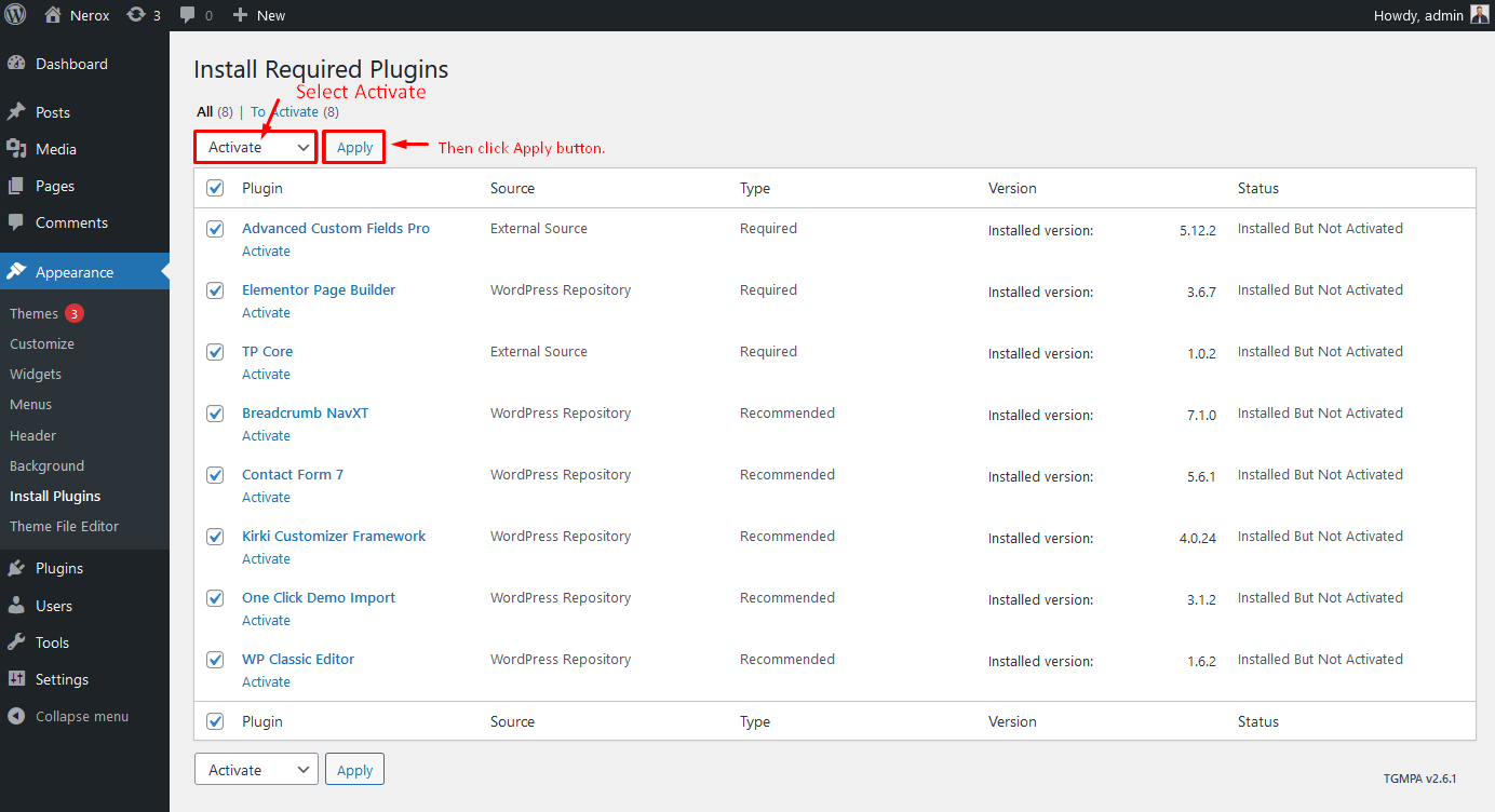 N.B: All plugins must be installed and activated if you want your site