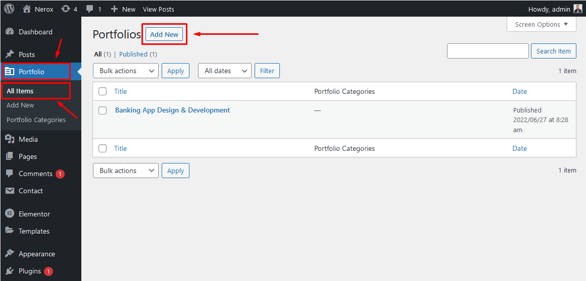 From the dashboard go to Portfolio All ItemsAdd New