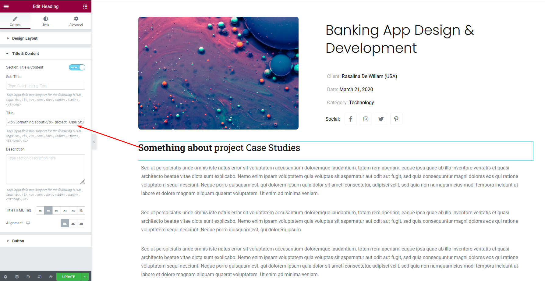 Add project title and text content