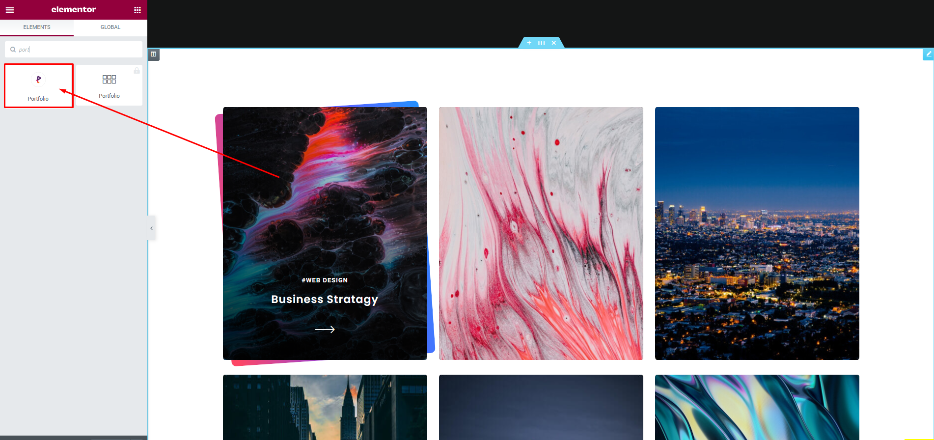 Choose and drop a Portfolio Projects element from the left side